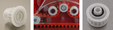 BNL塑料轴承同样用于光学驱动机构。它们被用作托辊或皮带张力轮共同嵌入齿状皮带轮或模塑在轴上。在某些情况下会在设计上加入防护罩以抵御来自纸屑造成的机械磨损。轴承组件由热塑性材料制成能够消除纸张快速运输产生的静电,因此不会吸引碎屑至机构中,而碎屑可能会导致输纸路径的崩溃。无需润滑因此系统传输文件的过程中也不必担心弄脏文件。