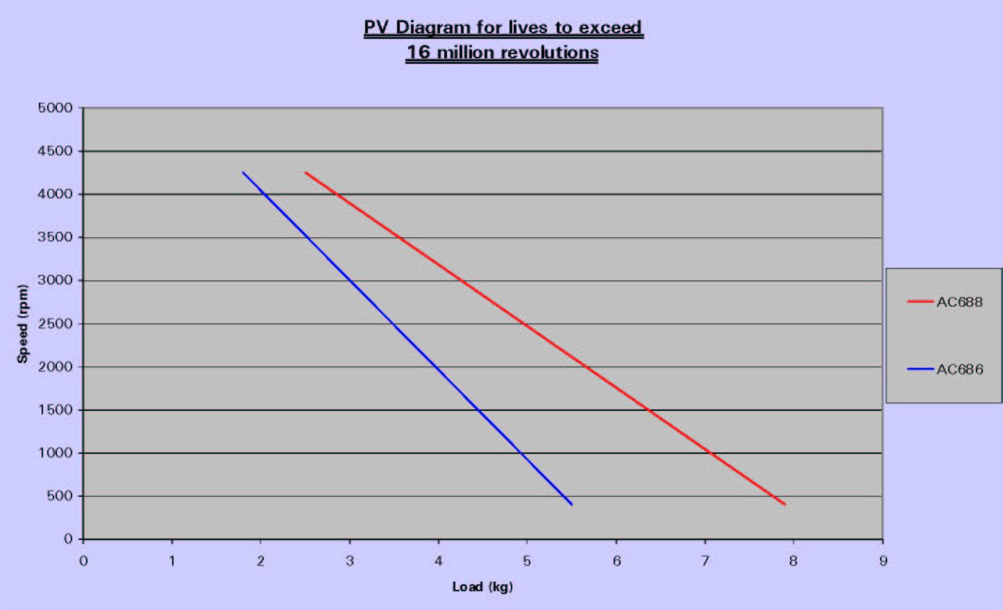 The following PV curves are to be used only as a guide for bearing selection - they are based on laboratory condition testing at ambient temperature (20° C).
